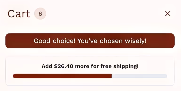 My free shipping progress bars tap into goal-gradient psychology—customers naturally want to 'complete' the bar. This simple feature increases average order value by 43% as shoppers add more items to qualify.