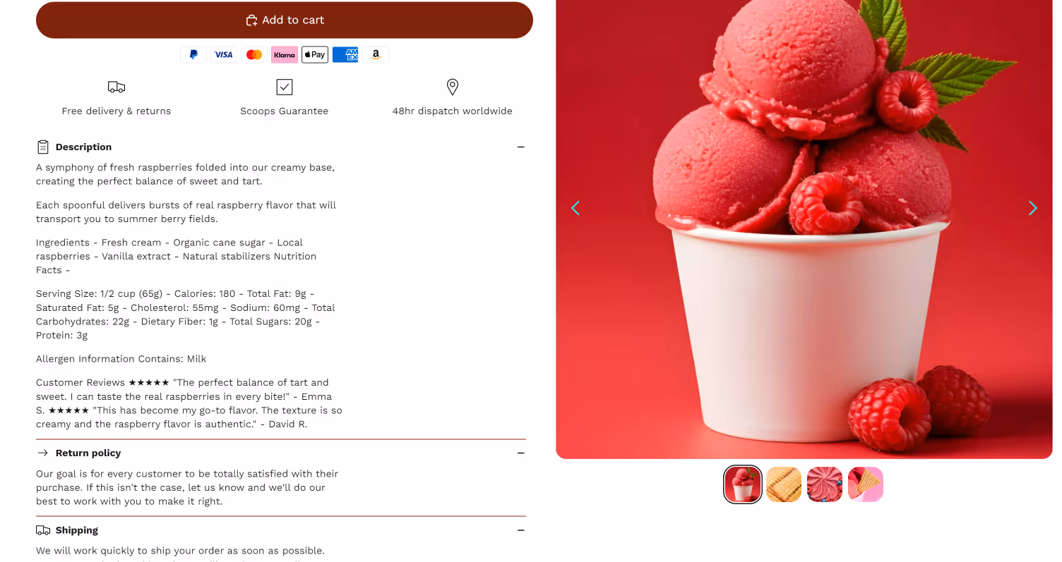 My image galleries don't just display products—they create desire. Strategic lightbox functionality lets customers examine every detail, while high-impact visuals trigger the emotional connection that leads to purchase.