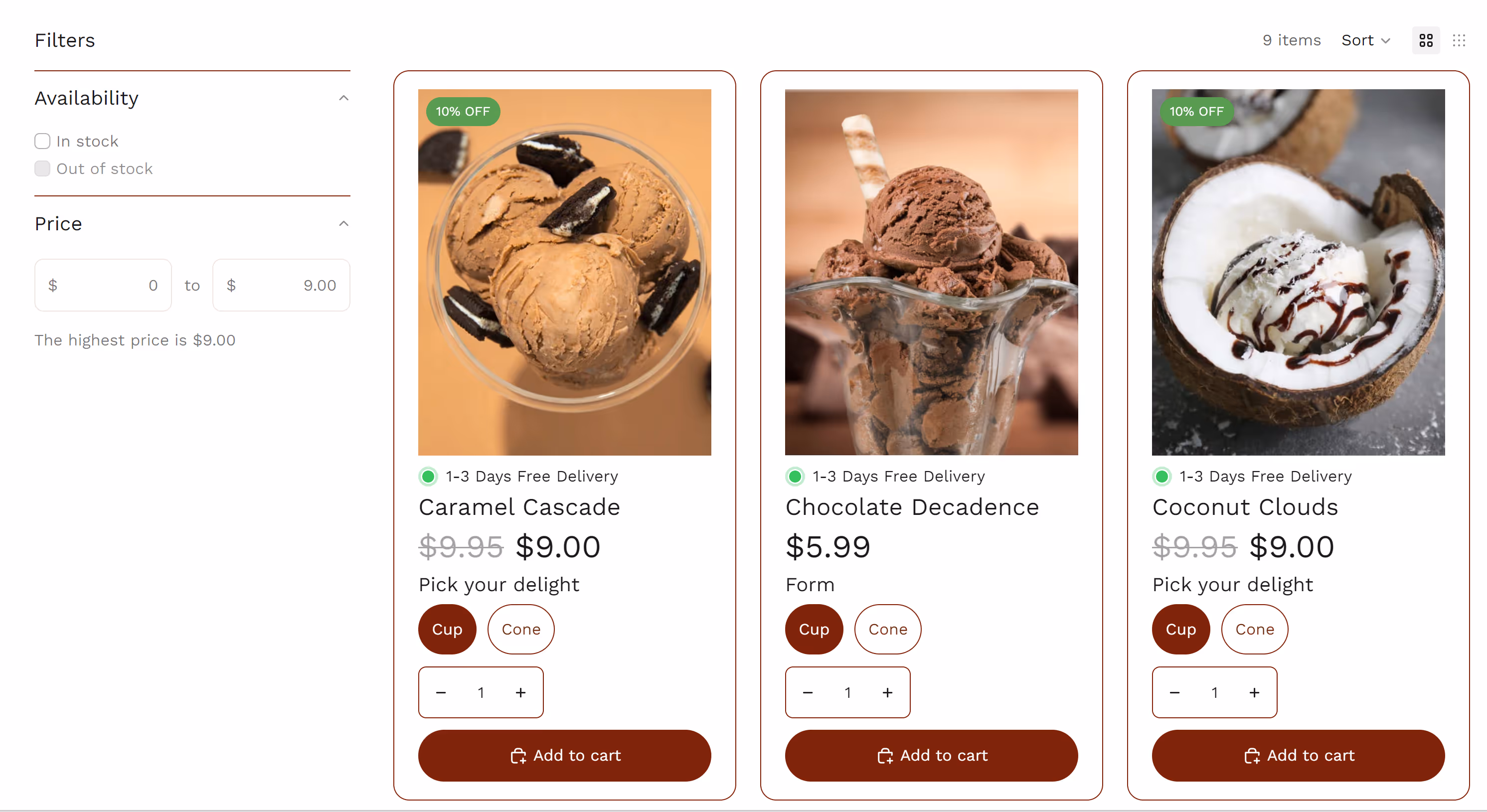 My collection pages don't just display products—they guide customers to buy more. Smart filtering keeps them browsing longer while strategic upsells and discount badges increase both conversion rates and order values.